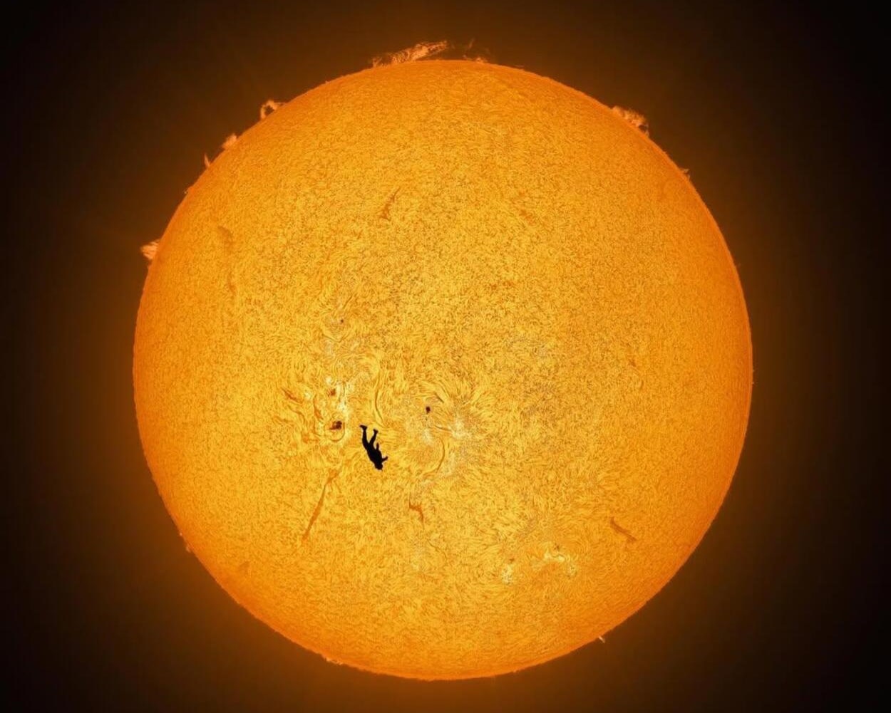 Американский фотограф запечатлел падение парашютиста на фоне солнечного диска. Он назвал работу «Падение Икара».
