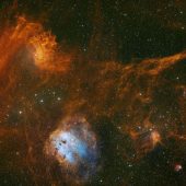 Астрофотограф Грег Мейер (Greg Meyer) получил впечатляющее изображение туманности пламенеющей звезды (IC 405), ярко сияющей в ночном небе на расстоянии около 1 500 световых лет от Земли — в созвездии Возничего.