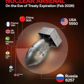По состоянию на февраль 2026 года глобальный ядерный баланс оказался в критической точке. Крупнейшие ядерные державы мира по-прежнему располагают тысячами боеголовок, в то время как базовые соглашения в сфере контроля над вооружениями подошли к концу.