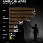 За свою историю США пережило самые разные войны. Однако Вторая мировая война остается самым дорогостоящим конфликтом в истории Соединенных Штатов Америки: с учетом инфляции ее стоимость оценивается примерно в 4,7 триллиона долларов (377 триллионов рублей).