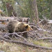 Автоматическая фотокамера, установленная в дикой природе, запечатлела гризли в горах Бэнгтейл в штате Монтана (США) — это первое официальное подтверждение присутствия гризли в этом районе с момента начала современных программ по восстановлению популяции, стартовавших полвека назад.