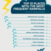 Дождь влияет на жизнь миллионов людей по всему миру, но в некоторых местах он почти никогда не прекращается. Новые климатические данные выделяют десять городов с наибольшей частотой осадков в году, измеряемой количеством дождливых дней.