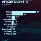 Китай располагает крупнейшими в мире запасами редкоземельных элементов — около 44 миллионов тонн, согласно данным, согласованным с отчетом Mineral Commodity Summaries 2025 Геологической службы США (USGS).