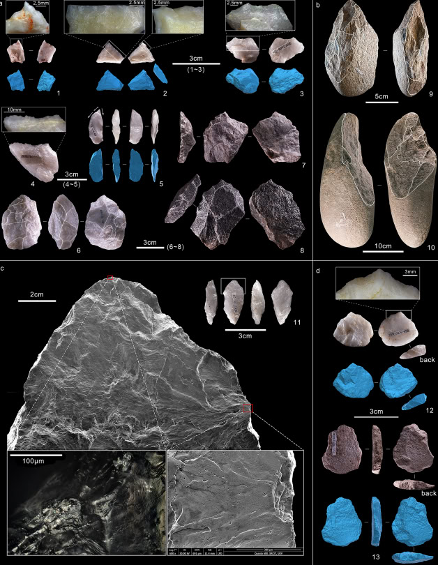 Авторы новой работы в Nature Communications показали, что в реальности сложные орудия были, просто на них раньше не натыкались. Они рассказали о находках в Сигоу (район водохранилища Даньцзянкоу, провинция Хэнань, восточный Китай). Найденные небольшие каменные фрагменты крепились к деревянному древку.