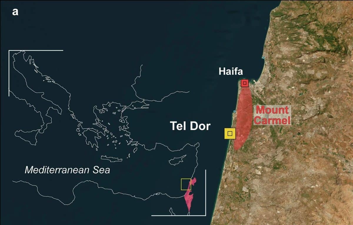 Раскопки проходили в мелководной лагуне Дор, напротив Тель-Дора — древнего города-порта, расположенного в 30 километрах к югу от Хайфы, между горой Кармель и берегом Средиземного моря. На глубине всего около трех метров археологи нашли на дне предметы, явно свидетельствующие о когда-то произошедшем там кораблекрушении: амфоры, ручки от корзин, якорь, балластные камни.