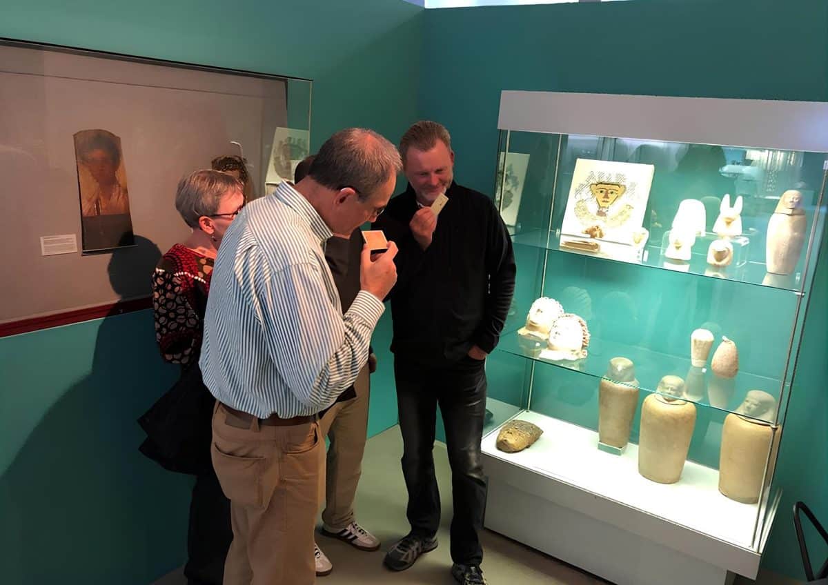Как показали последние достижения биомолекулярной археологии, предметы могут сохранять молекулы, предоставляющие информацию о запахах, которые связаны с медицинскими, парфюмерными, ритуальными практиками древности. Международная команда ученых специально для выставки в музее Августа Кестнера в Ганновере разработала технологию, которая позволяет восстанавливать запах по его молекулярному «отпечатку» из прошлого.
