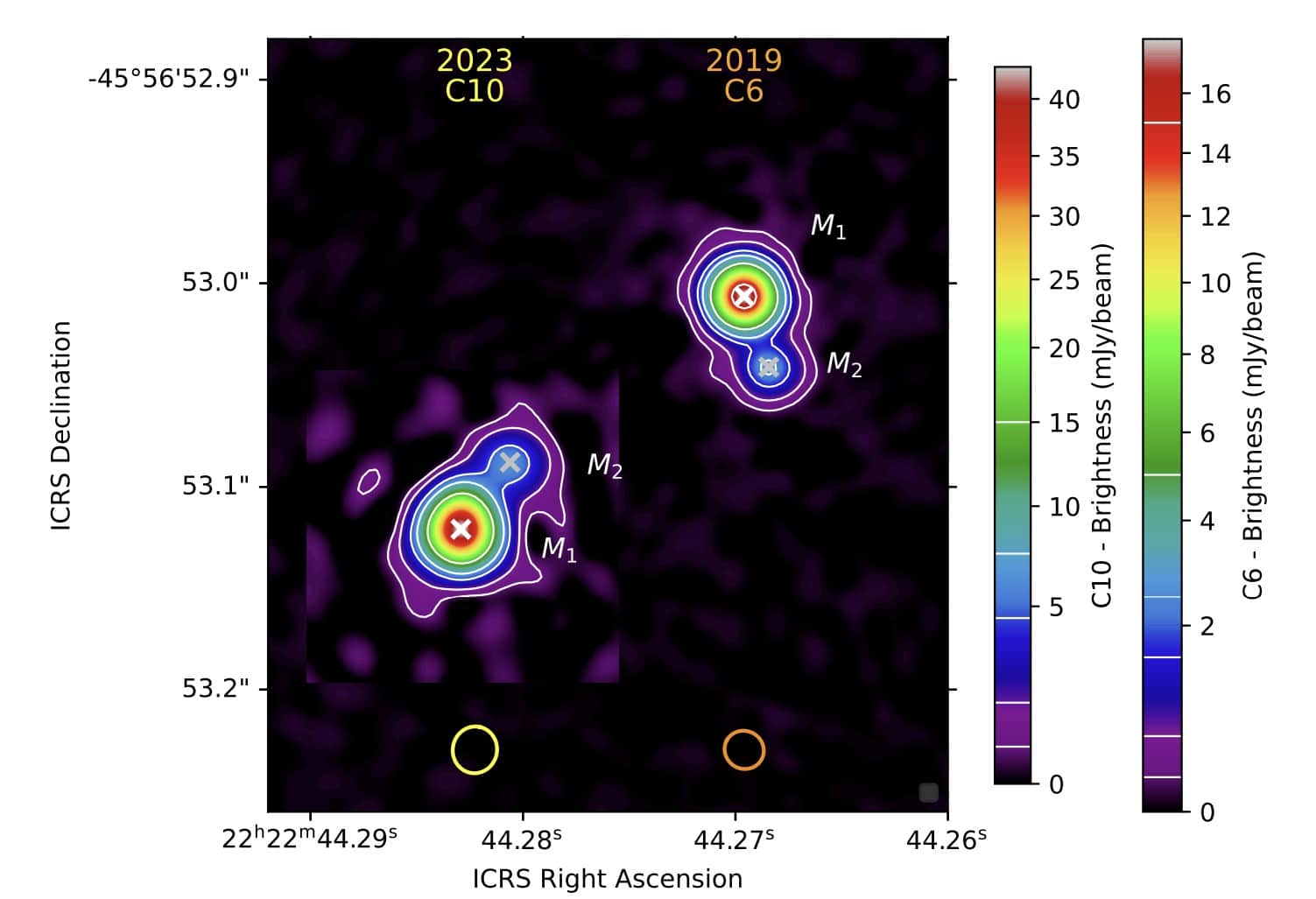 С помощью комплекса радиотелескопов ALMA астрономы разглядели вблизи Пи¹ Журавля А компаньона Пи¹ Журавля C. Запечатлеть такого близкого соседа у звезды с асимптотической ветви гигантов удалось впервые. Исследование опубликовано в журнале Nature Astronomy.