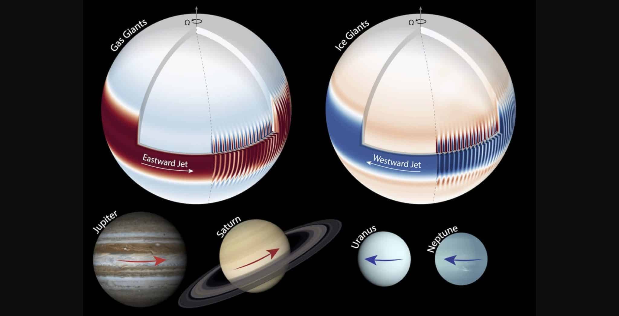 Переход между состояниями при этом зависит от глубины конвективного слоя: более глубокие оболочки характерны для Юпитера и Сатурна, мелкие — для Урана и Нептуна. Хотя в промежуточном диапазоне возможны оба варианта, исход зависит от случайных флуктуаций в начальной турбулентности. Моделирование также помогло выявить наличие экваториальных волн, которые движутся в противоположных направлениях в зависимости от типа вращения, что, по мнению планетологов, указывает на универсальный механизм этих процессов.
