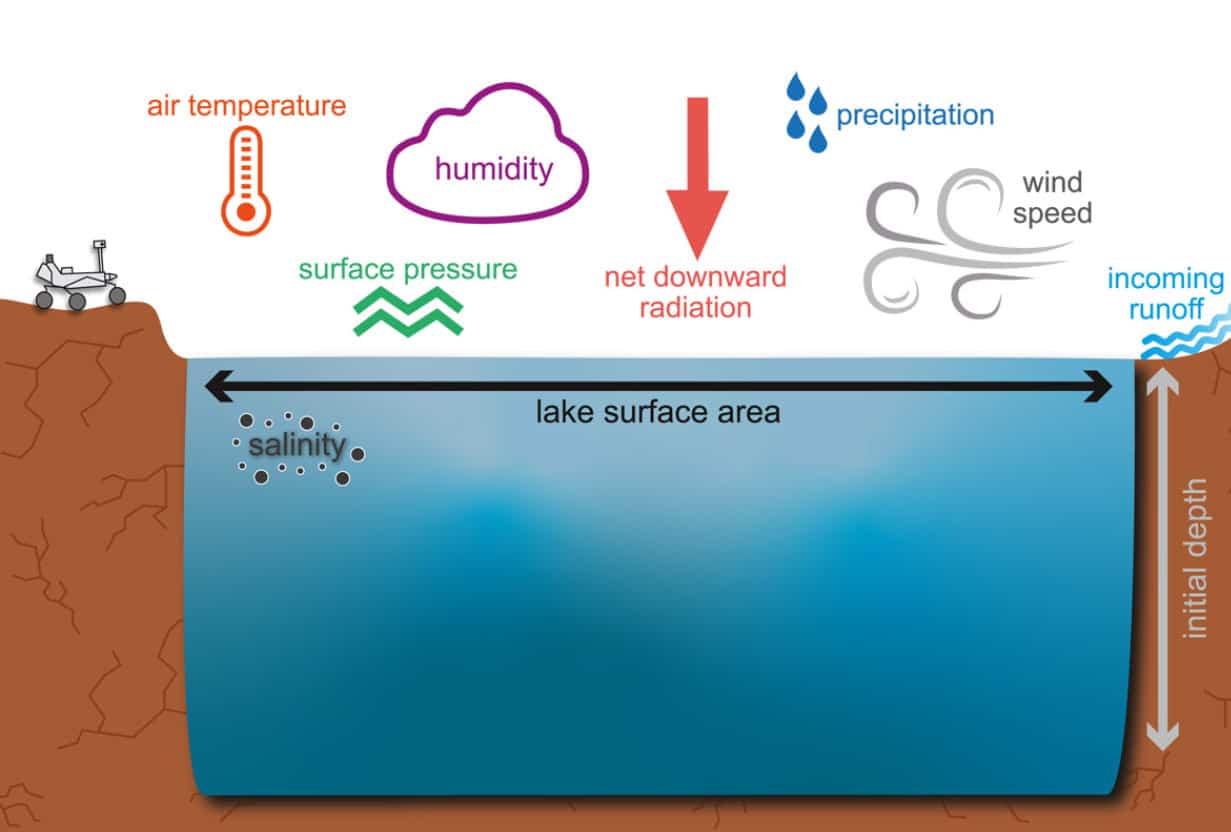 Исследователи взяли исходно очень неглубокое озеро, всего десять метров глубиной, предположив осадки в 50 миллиметров в год. Затем они включили в расчеты образование ледового слоя в холодное время года. При таких условиях даже в суровом марсианском климате озеро стабильно остается в основном жидким на протяжении более, чем 56 земных лет, то есть всего периода климатической симуляции.