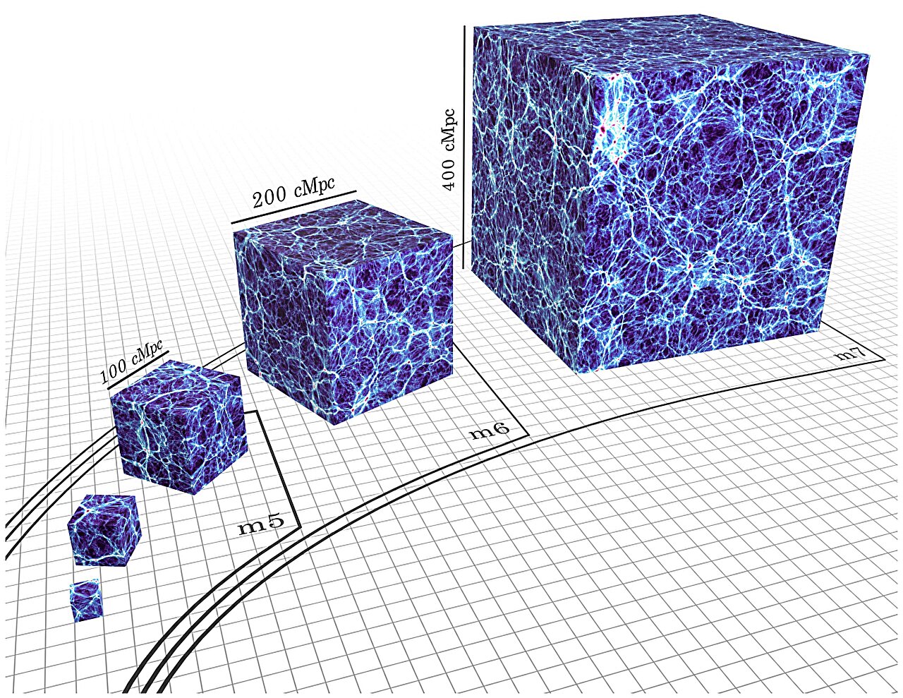 Пять кубов симуляций COLIBRE с длиной сторон от 25 до 400 микрометров. / © arXiv: DOI: 10.48550/arxiv.2508.21126