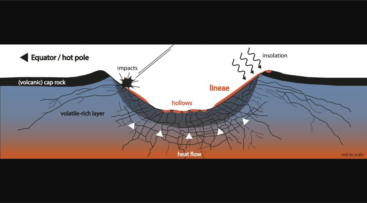 Таким образом, планетологи предложили концептуальную модель, в которой ударные кратеры вскрывают слои, богатые летучими компонентами, перекрытые более плотными вулканическими породами. В таком случае нагрев и трещины позволяют веществам мигрировать к поверхности и испаряться, что приводит к их медленному стеканию по склонам. Проверить гипотезу позволит будущая миссия BepiColombo: она обеспечит более высокое разрешение изображений и увеличенный временной интервал наблюдений.