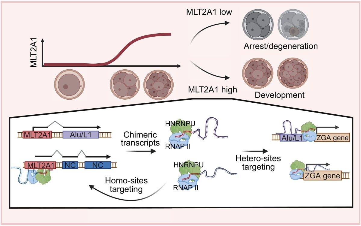 Схема действия ретровирусной последовательности MLT2A1 / © Yangquan Xiang, Yuli Qian et al.