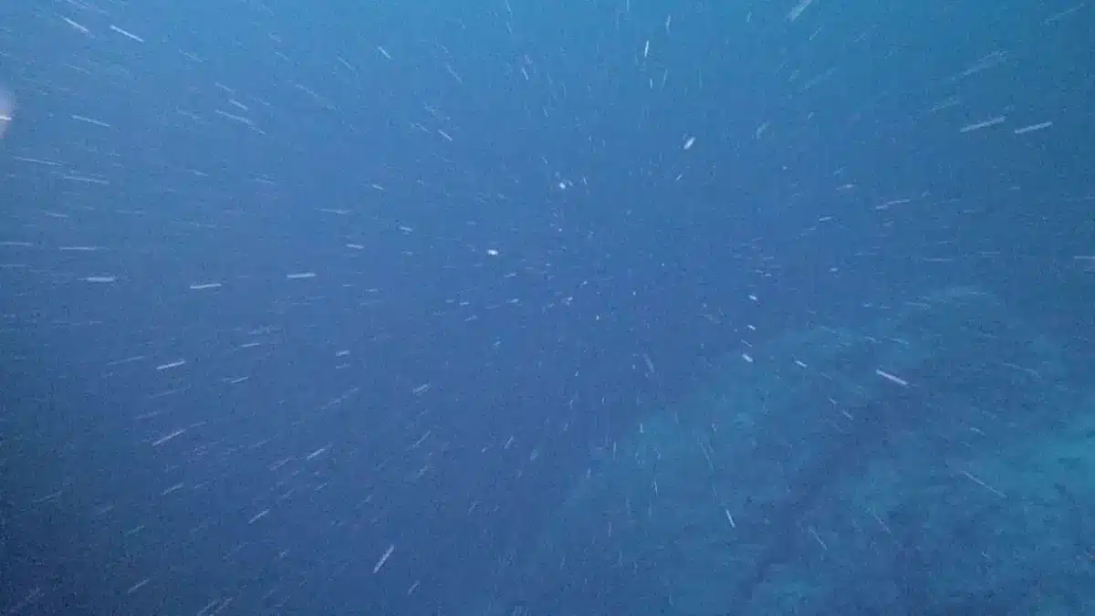 «Морской снег» — это частицы отмершего фитопланктона, экскрементов зоопланктона, пыльцы и других остатков, которые медленно опускаются с освещенных солнцем поверхностных вод на многокилометровую глубину. Этот процесс — важная часть морской экологии и глобального климата. Он переносит углерод из атмосферы в глубины океана, где тот хранится минимум тысячелетиями, и служит единственным источником пищи для гигантских сообществ организмов, обитающих в вечной темноте.