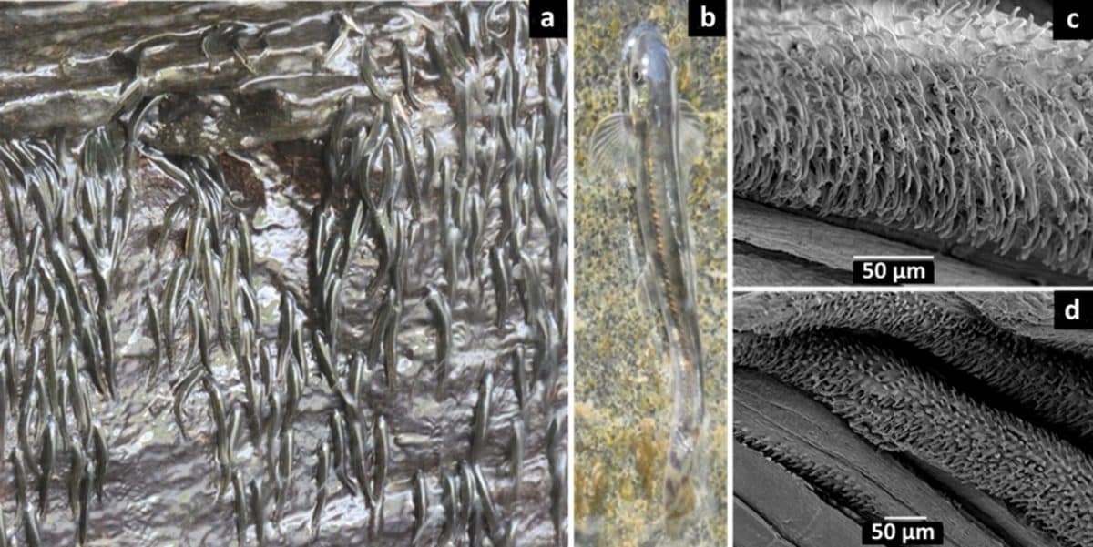 В конце концов исследователям, статья которых опубликована в журнале Scientific Reports, удалось запечатлеть на камеру, как тысячи рыбок, цепляясь за влажные скальные поверхности, карабкаются вверх по 15-метровому водопаду Лувиломбо на одноименной реке.