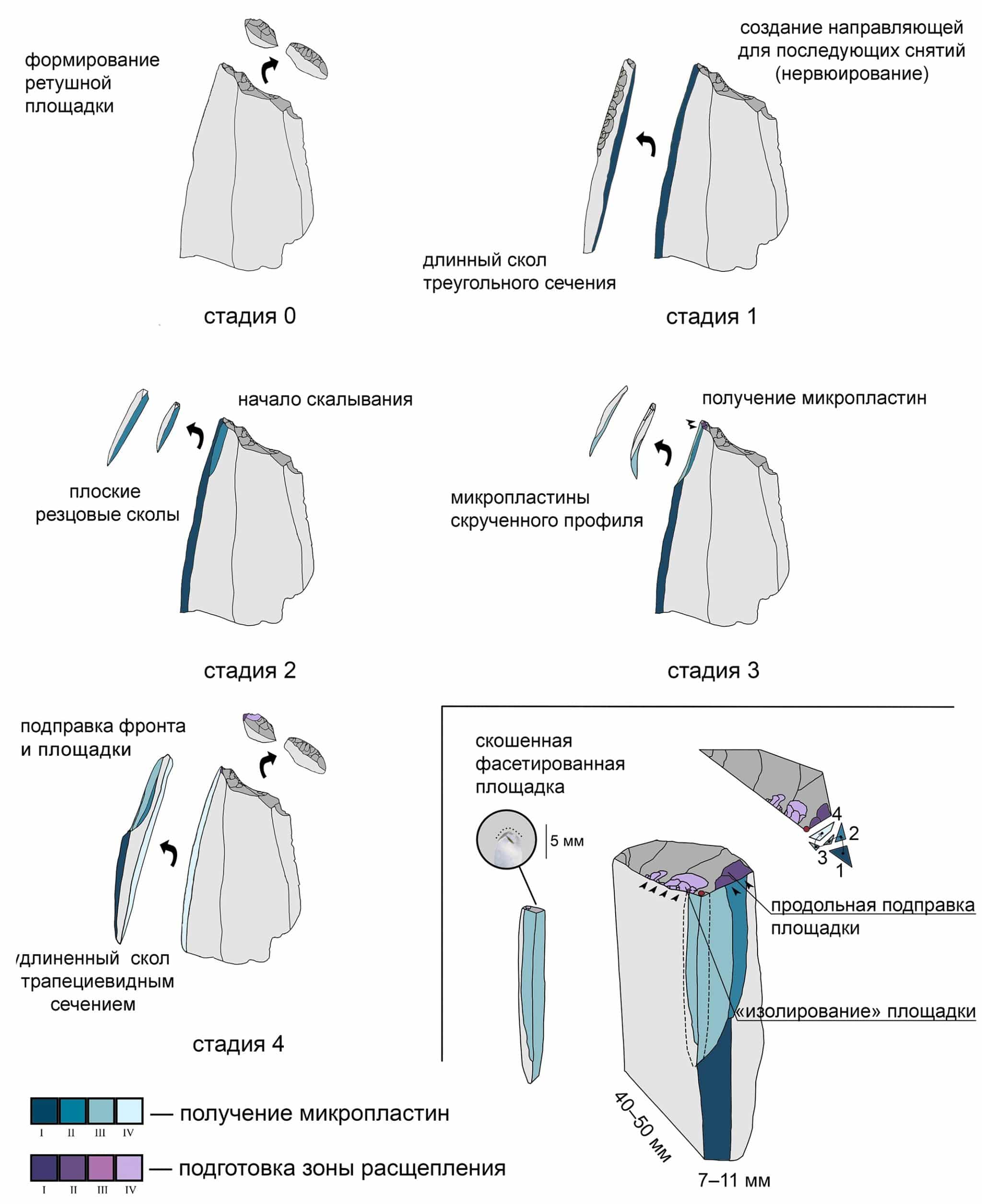 Авторы исследования самостоятельно повторили технологию такого скалывания. Выяснилось, что с одного такого резца-нуклеуса можно получить до 15 микропластинок, а если над этим работает мастер, то и более. Это объясняет, почему микропластинок на памятнике больше, чем резцов.