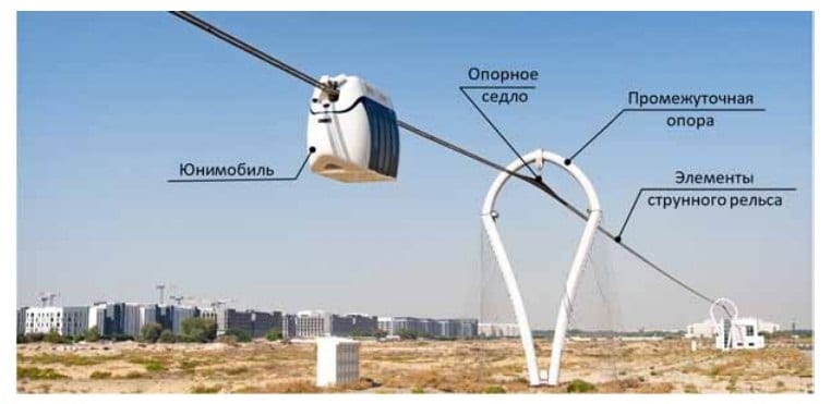 Чтобы юнимобиль двигался по струнному рельсу без рывков, инженеры компании UST Inc. внедрили в путевую структуру опорное седло — балку переменной жёсткости, которая сглаживает переход между пролётами. Это решение создает плавную траекторию, делая поездку комфортной: юнимобилю не приходиться снижать скорость при проезде промежуточных опор, что уменьшает время в пути и расходы энергии на движение.