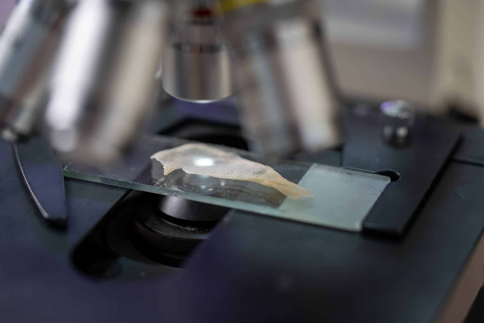 Тестируемые образцы проходили испытания на прочность, гибкость и устойчивость к влаге: материалы сравнивали с традиционной кожей и синтетическими аналогами, анализируя их деформации под нагрузкой и при растягивании. Кроме того, часть материала специально консервировали, чтобы оценить устойчивость к длительному хранению и воздействию микроорганизмов.