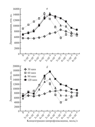 В течение следующих двух часов ученые внимательно следят за реакцией клеток. Каждые 30 минут специальный высокочувствительный прибор (ридер) измеряет яркость свечения бактерий. Это позволяет точно узнать, как именно и с какой скоростью микроорганизмы реагируют на химическое воздействие, превращая невидимые молекулярные процессы в понятные числа и графики.