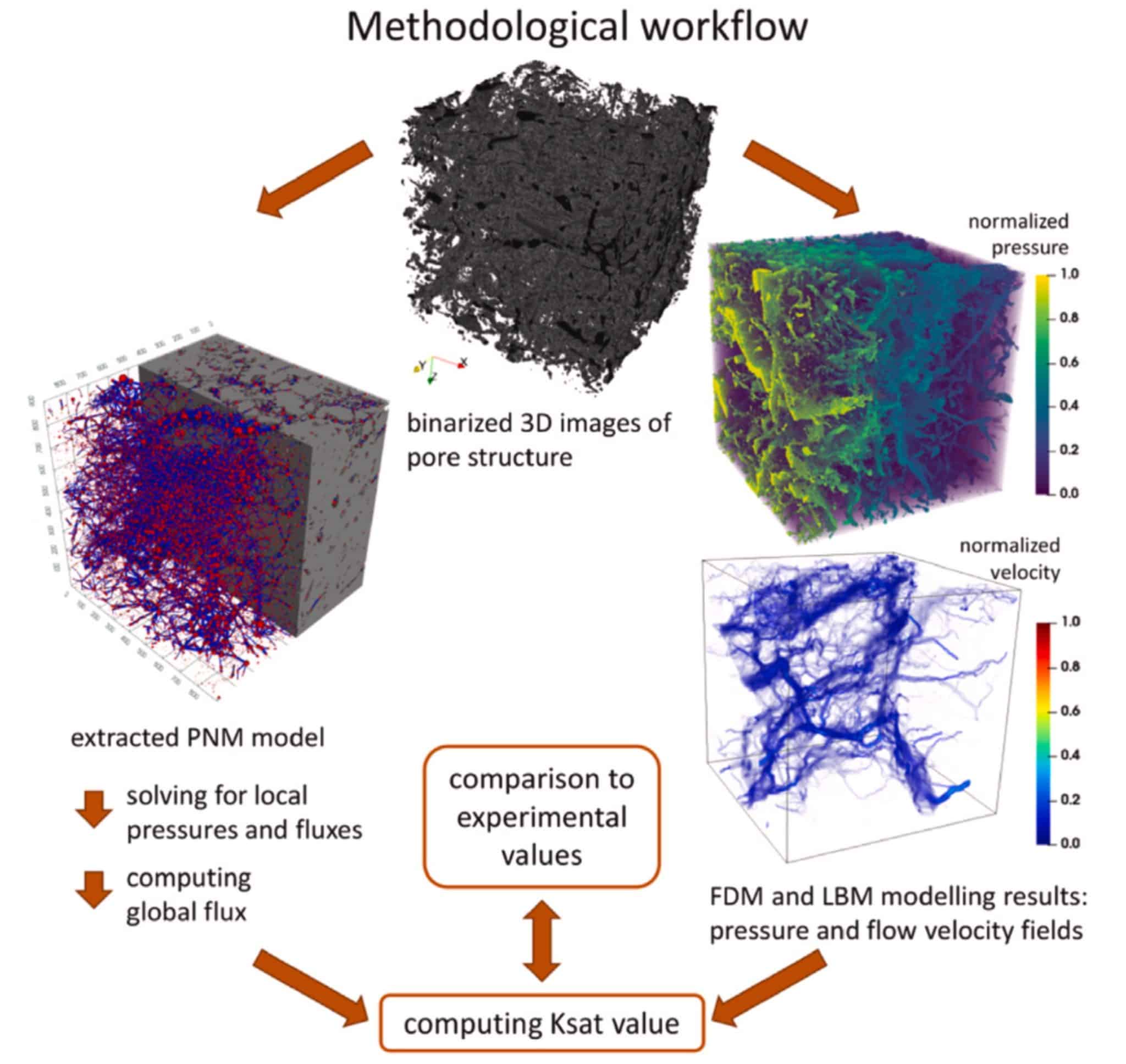 Ученые создали 3D-структуру на уровне пор для трех образцов почвы Суздальского ополья с помощью изображений рентгеновской микротомографии. Они применили три принципиально разных метода моделирования для расчета гидравлической проводимости. Несмотря на то что методы имеют различные фундаментальные подходы, результаты моделирования совпадают по порядку величины с экспериментом. Что подтвердило надежность цифрового моделирования.