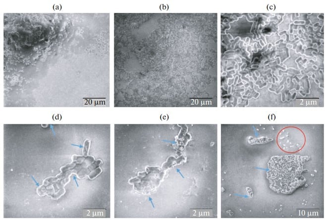 Бактерицидное действие экстракта черной львинки также наблюдали через сканирующий электронный микроскоп (SEM). Оказалось, что под действием экстракта бактериальные клетки слипались и наблюдалась деструкция многослойных биопленок. Число прикрепленных к биопленкам бактерий заметно снизилось. Поверхность клеток стала неровной, клеточные стенки сморщились и приобрели поры. Также после обработки экстрактом львинки были обнаружены разрушенные клетки, остатки клеточных стенок и пустые мембраны.
