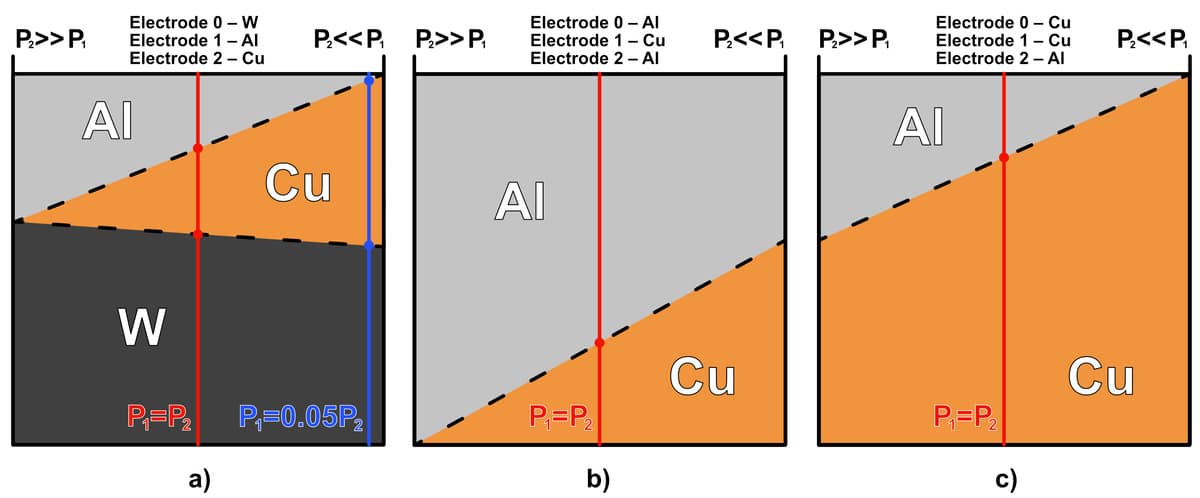 В отличие от классической схемы с двумя электродами, новая установка, разработанная физиками, напоминает миниатюрный реактор с несколькими независимыми источниками материала. В экспериментальной версии используются три электрода, расположенные под углом 120 градусов друг к другу. Один из них, центральный, сделан из вольфрама, а два других — из меди и алюминия.