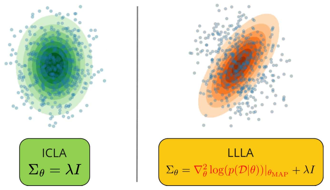 Один из классических подходов к оценке неопределенности в искусственном интеллекте — байесовские методы. Их можно сравнить с созданием не одной, а целого ансамбля из тысяч возможных моделей, что позволяет оценить разброс их предсказаний. Однако такой подход требует огромных вычислительных ресурсов. Более практичная альтернатива — аппроксимация Лапласа — метод, который пытается оценить неопределенность, анализируя «ландшафт» параметров модели в окрестности наилучшего найденного решения. Этот ландшафт можно представить как горную местность, где самая высокая точка — это оптимальная модель. Форма этой вершины, ее кривизна, говорит о том, насколько модель уверена в своих параметрах. Острая, узкая вершина традиционно интерпретируется как высокая уверенность, а пологая и широкая — как низкая. Стандартные методы пытаются измерить эту сложную кривизну с помощью математического объекта, известного как матрица Гессе.