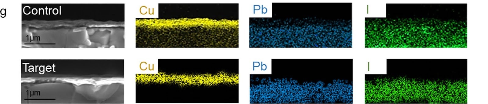 В экспериментальной части исследователи ввели TBAI в раствор, из которого формируются перовскитные пленки, и сравнили такие пленки с контрольными — без добавки. Пленки с TBAI сохраняли структуру и химическую стабильность при свете и нагреве, тогда как контрольные постепенно разрушались. Это видно по количеству металлического свинца — индикатора распада перовскита: после 250 часов света и нагрева его содержание в улучшенных пленках почти не изменилось, а в контрольных выросло примерно в полтора раза. Кроме того, в пленках с TBAI удалось почти полностью остановить миграцию йода и меди между слоями.