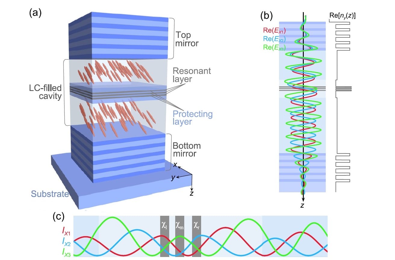 Чтобы преодолеть это ограничение и превратить «бронзу» в «глину», с которой можно работать в реальном времени, авторы исследования обратились к уникальным свойствам жидких кристаллов. Эти материалы, знакомые всем по экранам смартфонов и телевизоров, состоят из молекул, способных изменять свою ориентацию под действием внешнего электрического поля. Такое изменение, в свою очередь, меняет оптические свойства всего материала, в частности, его показатель преломления. Ученые предложили конструкцию, где полость оптического микрорезонатора заполнена жидким кристаллом, а внутри него размещены несколько тончайших слоев полупроводника на основе перовскита, который служит источником экситонов. Результаты исследования  опубликованы в журнале Physical Review A.