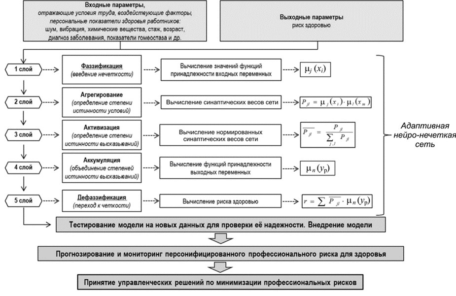 В основе разработки лежит не обычный искусственный интеллект, а специальная адаптивная нейро-нечеткая сеть. Ее ключевое преимущество — способность работать с неполной и неточной информацией. Одна часть программы — это математическая модель, которая обучается на разных данных и находит в них сложные закономерности. Это важно, потому что профессиональные заболевания редко возникают от одной причины — обычно это результат множества факторов. Вторая часть программы позволяет системе «мыслить» не только цифрами, но и качественными понятиями. Это значит, что она понимает значение фраз «высокий шум» или «средний риск», даже если границы этих терминов размыты.