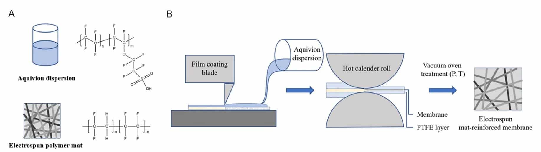 В качестве основного материала исследователи использовали иономер типа Aquivion. Это современный перфторсульфоновый полимер, обладающий высокой способностью проводить протоны. Но главная инновация заключалась в подходе к его армированию. Вместо инертных волокон ученые создали поддерживающий каркас из нановолокон, полученных методом электроспиннинга (также называемого «электропрядение»). Этот метод позволяет под действием мощного электрического поля вытягивать из раствора полимера нити толщиной в сотни нанометров, сплетая из них нетканый материал, похожий на высокотехнологичный войлок. Уникальность этих нановолокон заключалась в их составе: они состояли из смеси прочного фторполимера и того же самого иономера Aquivion. Таким образом, ученые впервые вплели протон-проводящий компонент непосредственно в структуру армирующего каркаса.