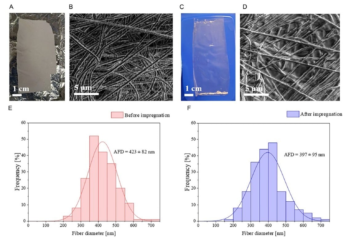 На следующем этапе этот нановолоконный «скелет» пропитали жидкой дисперсией иономера Aquivion, которая заполнила все поры между волокнами. После специальных процедур прессования и вакуумного отжига получилась тонкая, однородная и прозрачная композитная мембрана, в которой прочный нановолоконный каркас был намертво слит с основной протон-проводящей матрицей.