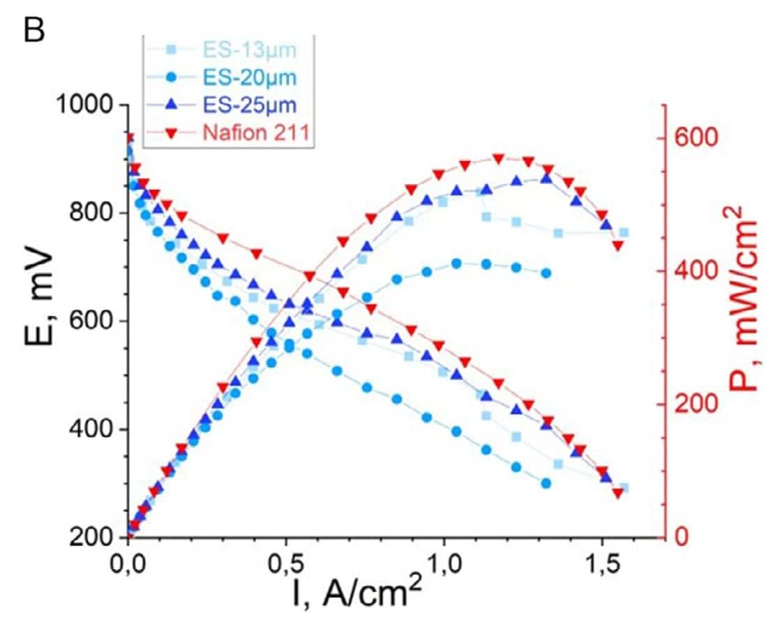 «Топливные элементы с протонообменной мембраной привлекают значительное внимание как жизнеспособная альтернатива традиционным источникам энергии. Производительность таких топливных элементов неразрывно связана с характеристиками полимерной мембраны, выполняющей в них как роль сепаратора, для которого важна механическая прочность и низкая водородная проницаемость, так и роль электролита, чья протонная проводимость напрямую отражается на мощности устройства. В нашей работе мы сосредоточились на поиске баланса между проводящими и механическими свойствами, чтобы обеспечить повышенную безопасность топливного элемента и при этом сохранить его высокую эффективность. Электроспиннинговое волокно с иономером в составе позволило нам укрепить полимерную матрицу мембраны без значительной потери проводимости», — рассказала об исследовании Вера Пузакова, студентка магистратуры МФТИ, инженер-исследователь лаборатории технологий ионообменных мембран МФТИ.