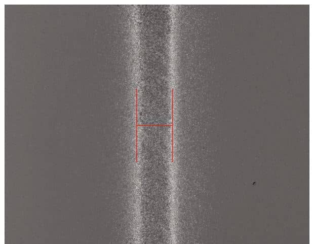 Следующий этап — фокусировка. Сферические наночастицы, увлекаемые потоком газа-носителя, поступают в сопло. Вокруг центрального канала с аэрозолем под большим давлением подается фокусирующий газ. Он сжимает аэрозольную струю, уменьшая ее диаметр. Меняя соотношение потоков газов и диаметр выходного отверстия сопла ученые могут регулировать ширину печатаемой линии. Печать происходит внутри вакуумной камеры при давлении около 40 миллибар, что устраняет сопротивление воздуха и не дает пучку расширяться раньше времени. Так на подложке появляются линии шириной в десятки микрометров.