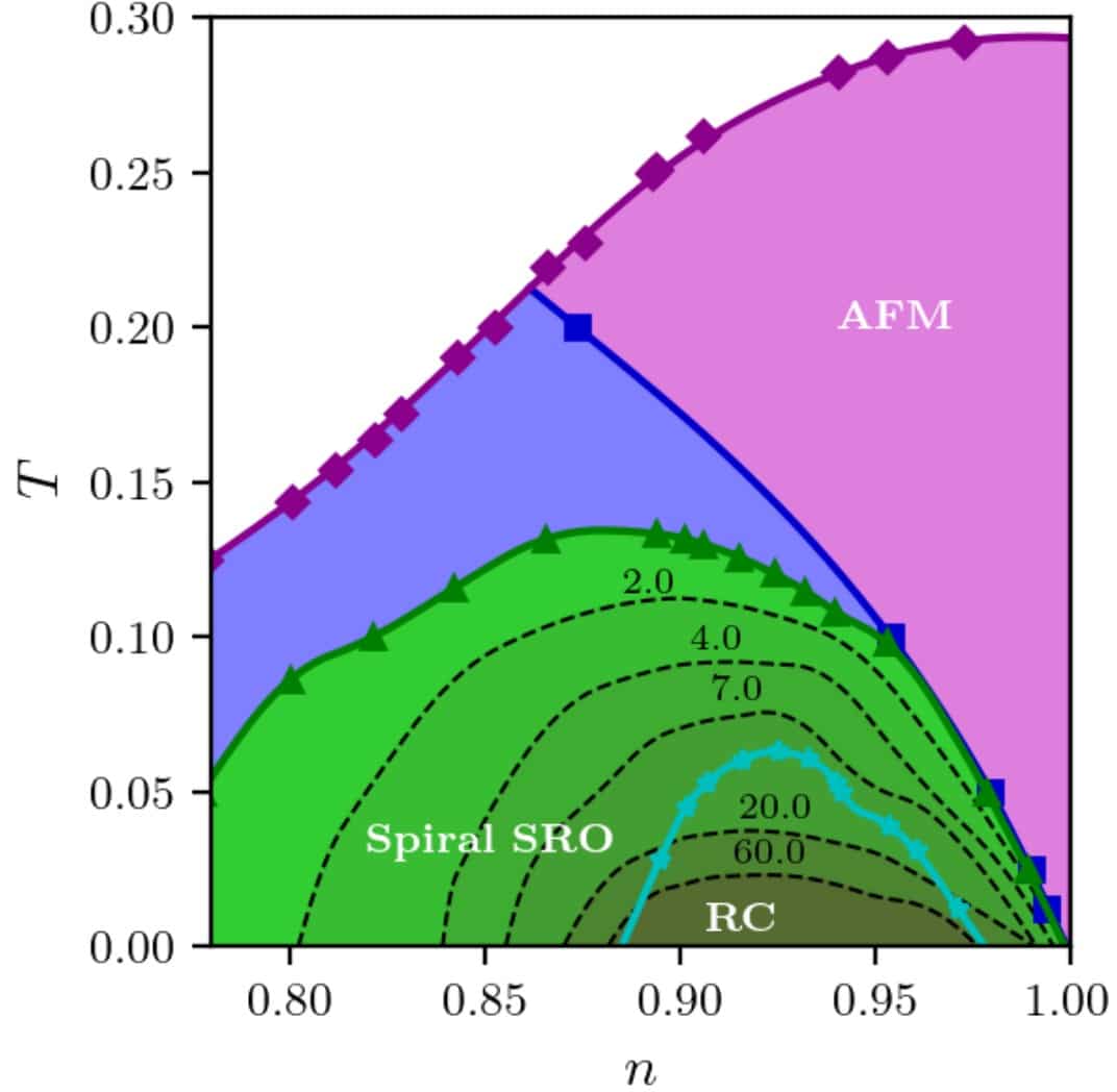 На основе своей модели ученые построили фазовую диаграмму, своего рода «карту магнитных состояний» материала в зависимости от температуры и концентрации примесей. Эта карта предсказала существование лишь очень узкой области легирования, в которой при низких температурах может возникать устойчивый дальний магнитный порядок — еще один факт, хорошо согласующийся с наблюдениями.