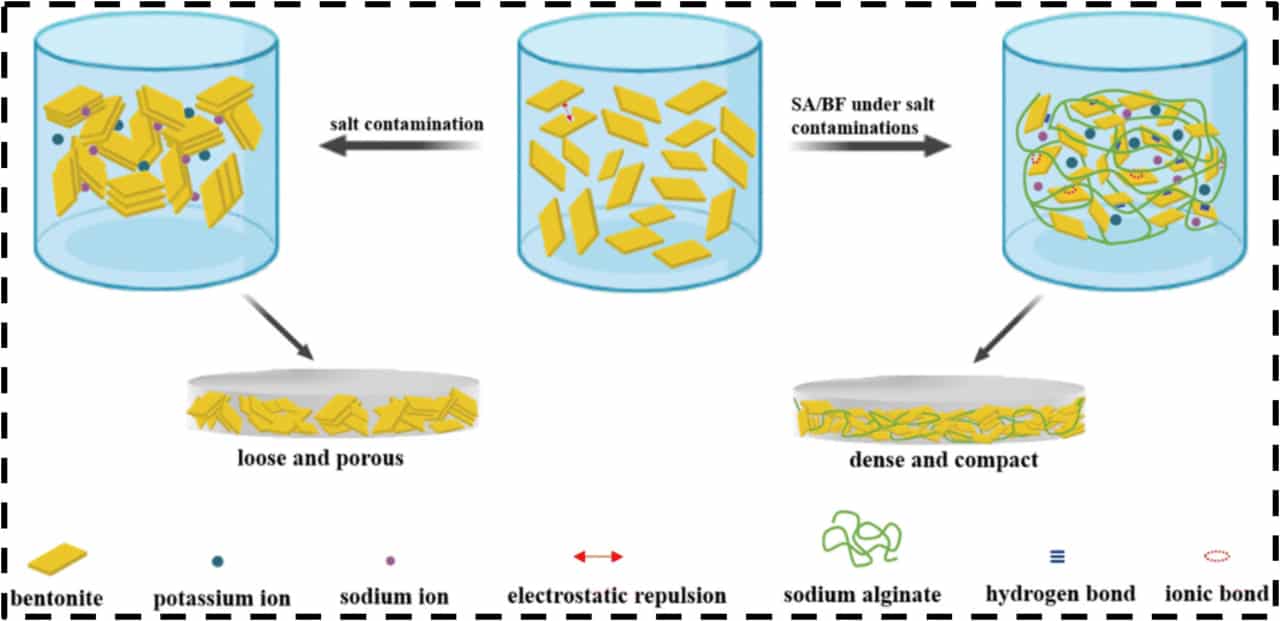 Схема механизма, показывающая, как альгинат натрия, экологически чистый полисахарид, улучшает реологические свойства и вязкость буровых растворов / © Пресс-служба ПНИПУ