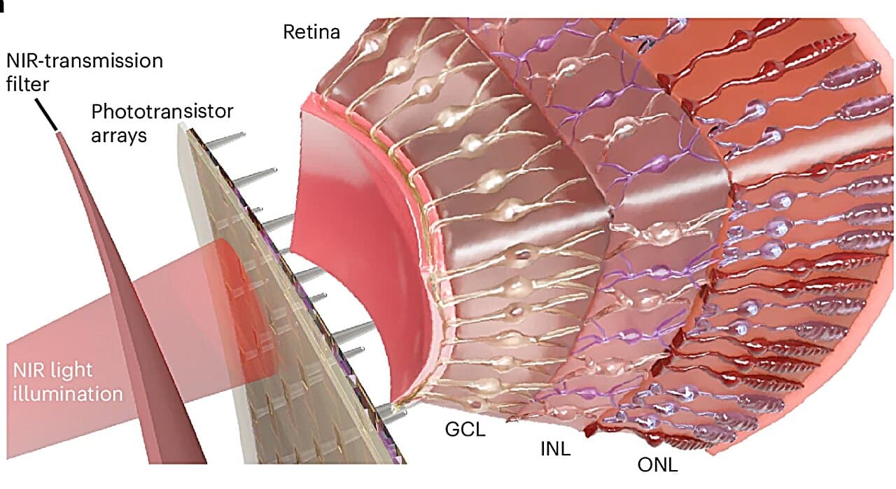 Ученые создали гибкий глазной имплантат для мышей, который преобразовывал ближний инфракрасный свет в электрические сигналы для стимуляции зрительных нервов. Такой подход может дать пациентам возможность различать свет без повреждения уцелевших клеток глаза твердыми электродами, но пока не известно, как человек воспримет невидимый спектр.