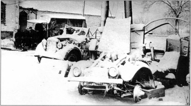 Брошенные под Тулой немецкие машины, декабрь 1941 года. Скорее всего их бросили в связи с неисправностями (на это указывает нехватка частей), а никак не проблемами с топливом или смазкой / © Wikimedia Commons