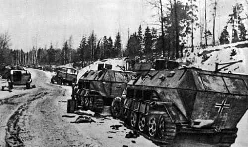 Немецкий бронетранспортеры и другая техника, брошенные во время отступления под Москвой. Именно здесь впервые немцы начали бросать боевую технику, часто исправной: ей не хватало горючего / © Wikimedia Commons