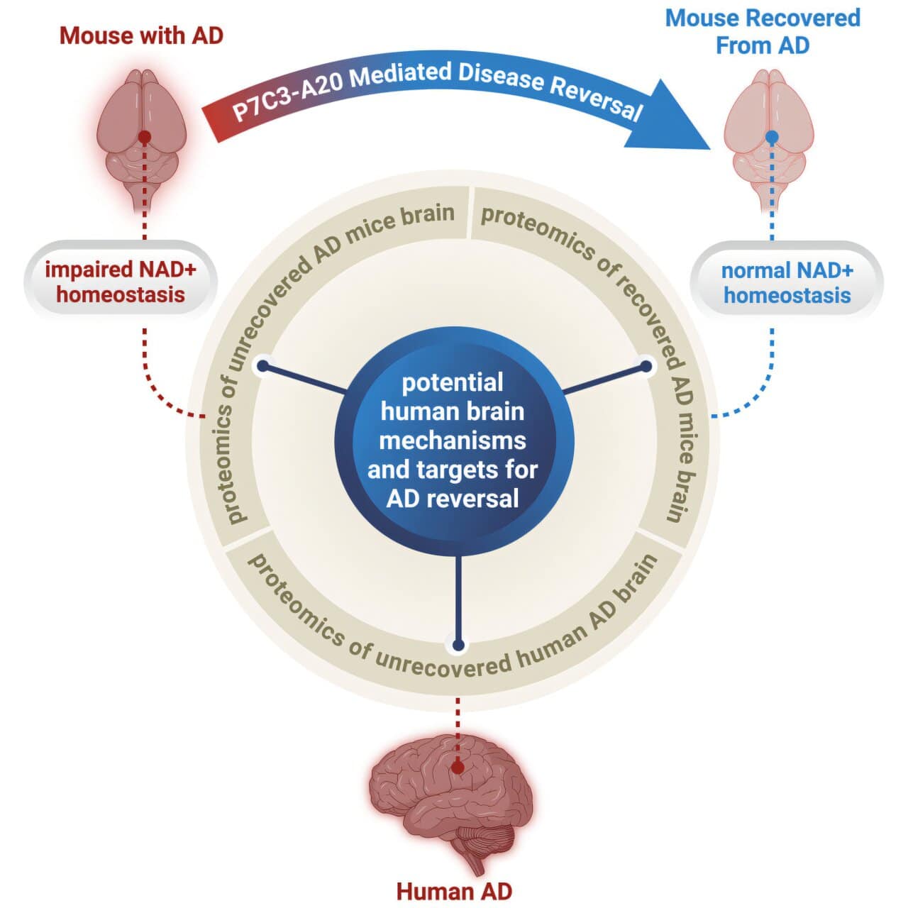 P7C3-A20 известно способностью восстанавливать баланс никотинамидадениндинуклеотида (NAD⁺) — универсальной молекулы, участвующей в энергетическом обмене и защите клеток мозга. Снижение уровня NAD⁺ оказалось напрямую связано с тяжестью болезни Альцгеймера и утратой «устойчивости» мозга — способности противостоять нейродегенерации.