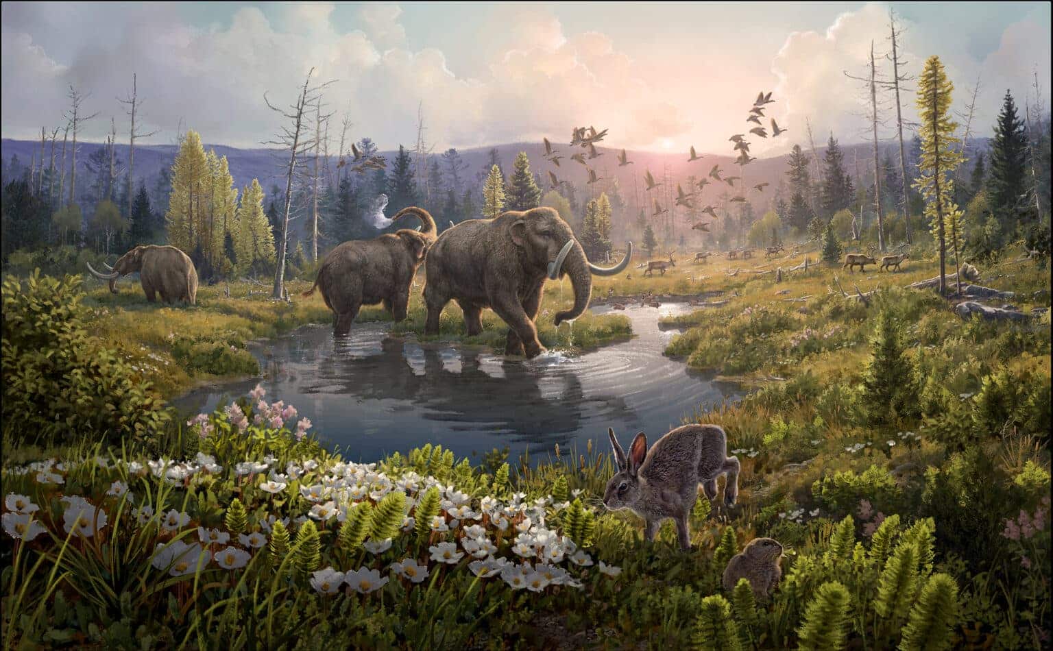 На суше ДНК оставили мастодонты — в отличие от мамонтов, далеко не самые большие любители сурового климата, — а также такие растения, как тополя, тис, калина. Именно поэтому авторы работы написали: «Реконструированная экосистема не имеет никаких современных аналогов». Нам неизвестны настолько северные зоны, заполненные таким количеством видов, которым место в субтропиках или умеренном климате.