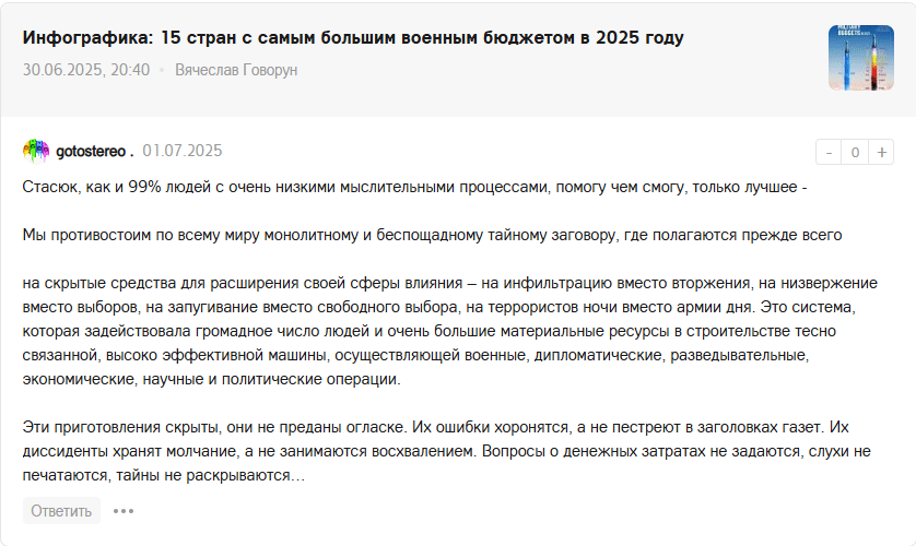 Все это означает, что просто взять и избавиться от теорий заговора нельзя. Они существовали всегда и никуда не исчезнут. Нужно минимизировать их вред — развивать медиаграмотность, поддерживать диалог и помогать людям различать проверяемые знания и убедительные, но недоказанные истории. Словом, теории заговора — не просто проблема отдельных людей, а отражение более глубоких процессов современного общества.