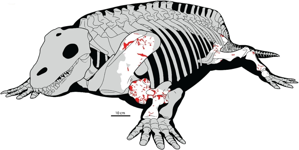 Авторы исследования, опубликованного в журнале Scientific Reports, изучили фрагменты скелетов трех детенышей рода Diadectes, найденные в 1997 году, во время раскопок дамбы в Техасе. Исследователи проанализировали повреждения на костях конечностей, классифицировав их на пять типов: царапины, проколы, борозды, ямки и сверления. Применив формулы для четвероногих тетрапод, ученые также рассчитали прижизненную массу наиболее сохранившегося животного на основе диаметра его бедренной кости.