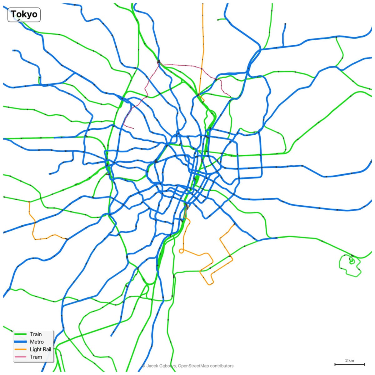 На инфографиках наглядно показано, насколько развит железнодорожный транспорт в десяти городах мира.