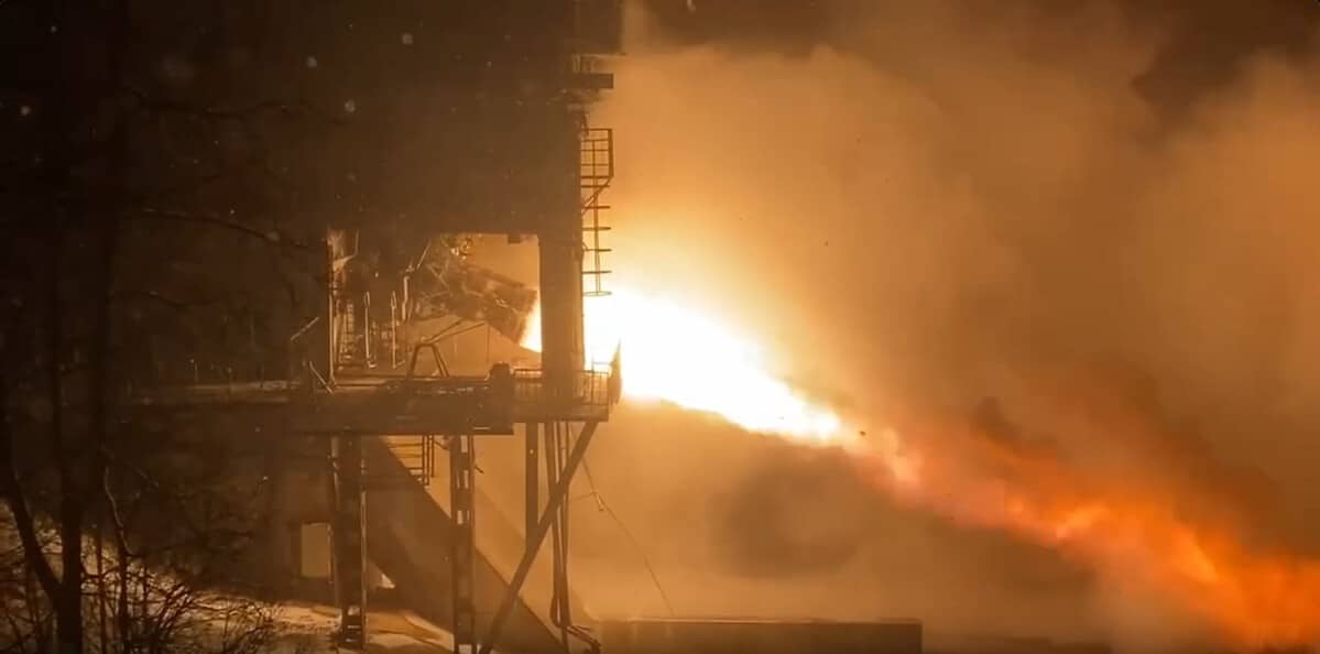 На записи запечатлена работа ракетных двигателей РД-107А/108А на испытательном стенде в Самаре.