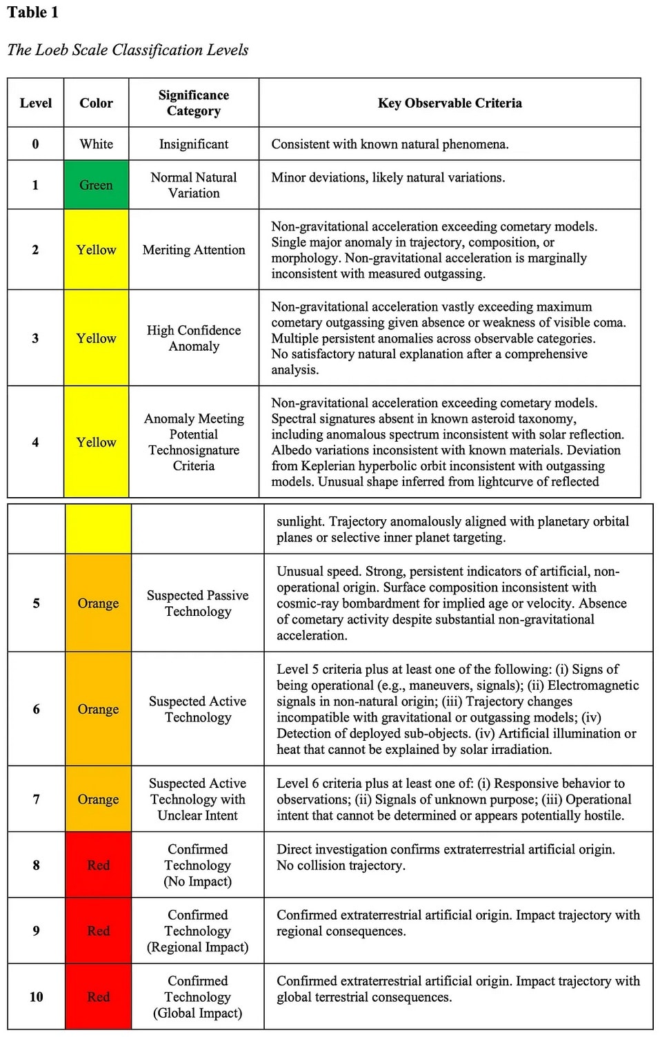 Алексей, а он и сделал таблицу. Статью с ней можно найти в поисковике через "The Loeb Scale: Astronomical Classification of Interstellar Objects". И 3i/atlas у него оценивался на 4-ку (3-4 мес. назад, дальше я не интересовался) Не так уж и много, не похоже на утверждение что это корабль пришельцев.