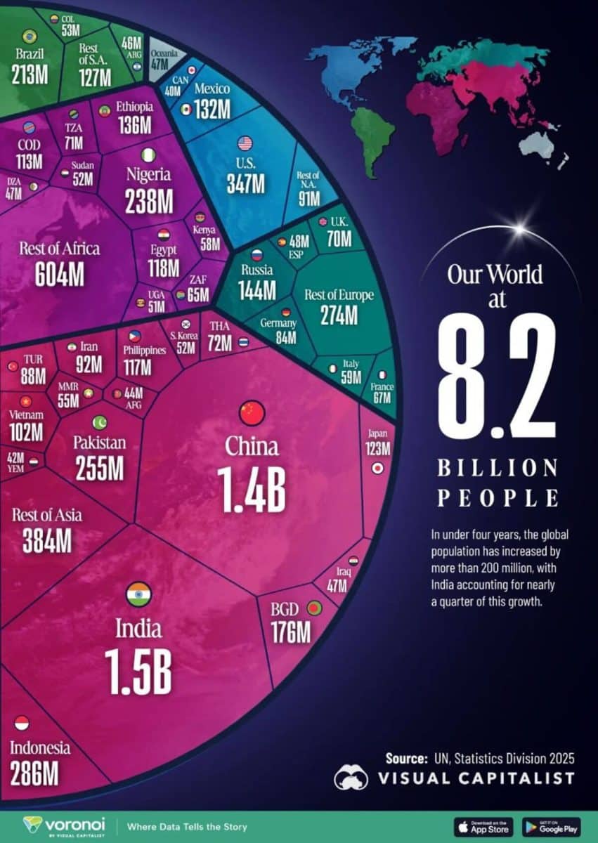 Все население мира — 8,2 миллиарда человек — в одной инфографике