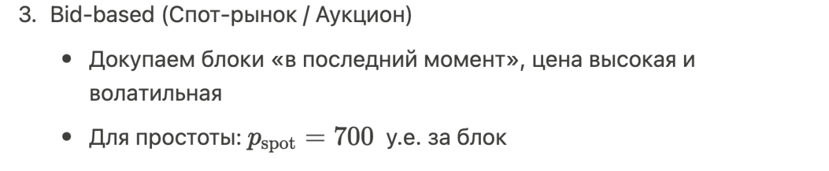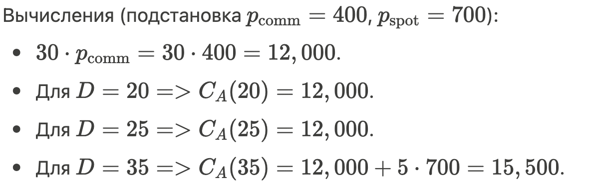 То есть B хуже при высоком спросе. Это происходит потому, что в пиковой ситуации приходится интенсивно использовать гибкие блоки по цене выше, чем committed, и одновременно выходить на дорогой спотовый рынок.