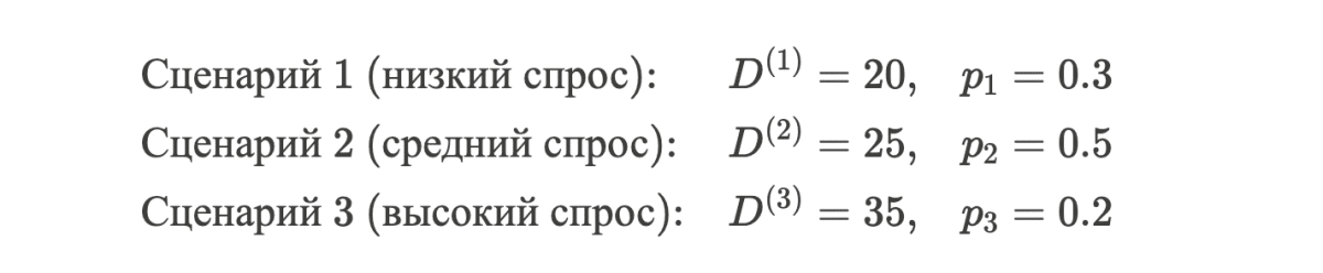 Математически: если C(S,Dᵏ) — стоимость портфеля S при реализации спроса D по сценарию k, то там нужно минимизировать эту стоимость: