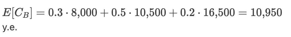 Мы хотим выяснить, во сколько нам обойдется выбранная стратегия S . Для этого работает простое математическое ожидание: рассчитываем стоимость для каждого возможного сценария k. Умножаем каждую такую стоимость на вероятность pₖ наступления этого сценария. Суммируем все полученные взвешенные стоимости. Итоговая величина и есть ожидаемая (средняя прогнозируемая) стоимость нашего портфеля S.