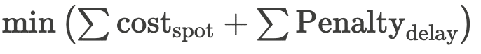 Формально это выражается как минимизация суммы затрат на спотовом рынке и всех штрафов за срывы сроков: